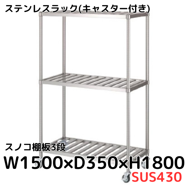 【CWD-RB353C】ステンレスラック スノコ棚板 3段 キャスター付き SUS430 W1500*D350*H1800