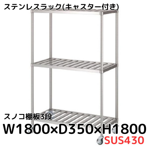 【CWD-RB383C】ステンレスラック スノコ棚板 3段 キャスター付き SUS430 W1800*D350*H1800