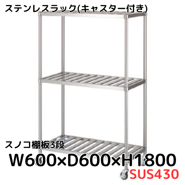 【CWD-RB366C】ステンレスラック スノコ棚板 3段 キャスター付き SUS430 W600*D600*H1800