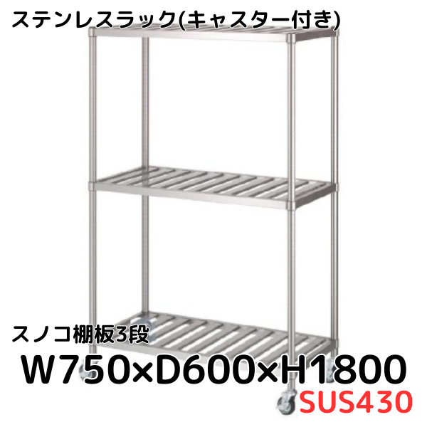 【CWD-RB376C】ステンレスラック スノコ棚板 3段 キャスター付き SUS430 W750*D600*H1800