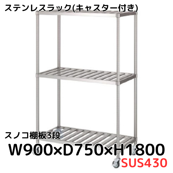 【CWD-RB397C】ステンレスラック スノコ棚板 3段 キャスター付き SUS430 W900*D750*H1800