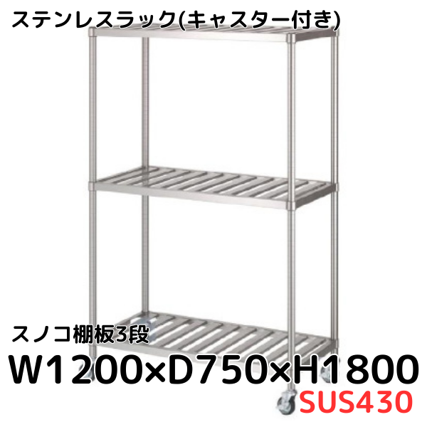 【CWD-RB327C】ステンレスラック スノコ棚板 3段 キャスター付き SUS430 W1200*D750*H1800