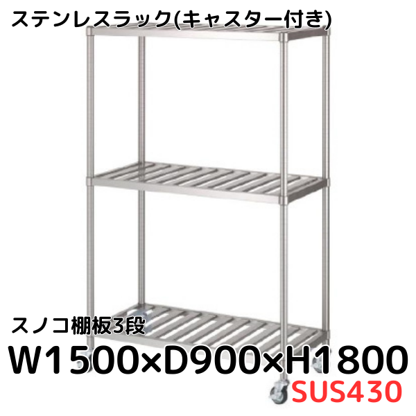 【CWD-RB359C】ステンレスラック スノコ棚板 3段 キャスター付き SUS430 W1500*D900*H1800