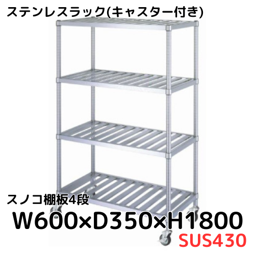 【CWD-RB463C】ステンレスラック スノコ棚板4段 キャスター付き SUS430 W600*D350*H1800