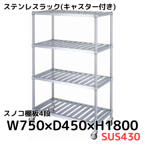 【CWD-RB474C】ステンレスラック スノコ棚板4段 キャスター付き SUS430 W750*D450*H1800