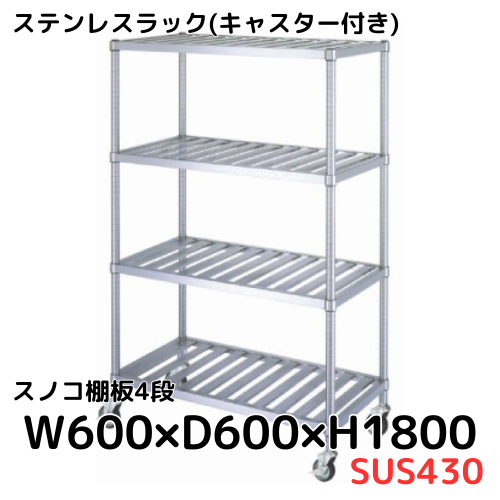 【CWD-RB466C】ステンレスラック スノコ棚板4段 キャスター付き SUS430 W600*D600*H1800