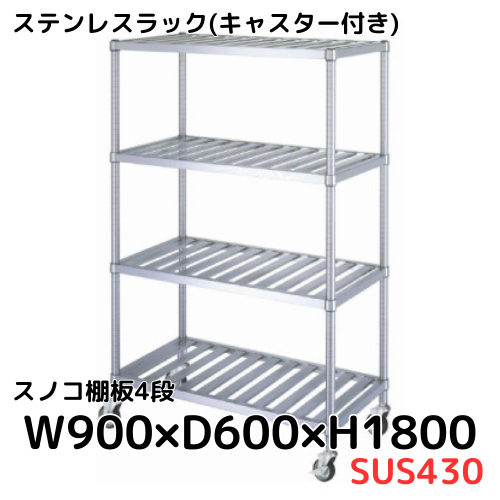 【CWD-RB496C】ステンレスラック スノコ棚板4段 キャスター付き SUS430 W900*D600*H1800