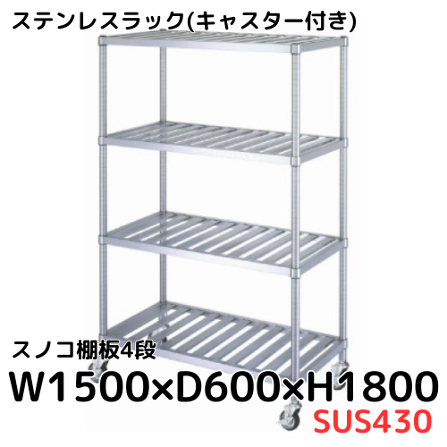 【CWD-RB454C】ステンレスラック スノコ棚板4段 キャスター付き SUS430 W1500*D450*H1800
