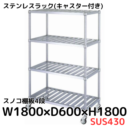 【CWD-RB484C】ステンレスラック スノコ棚板4段 キャスター付き SUS430 W1800*D450*H1800