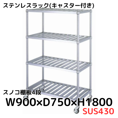 【CWD-RB497C】ステンレスラック スノコ棚板4段 キャスター付き SUS430 W900*D750*H1800