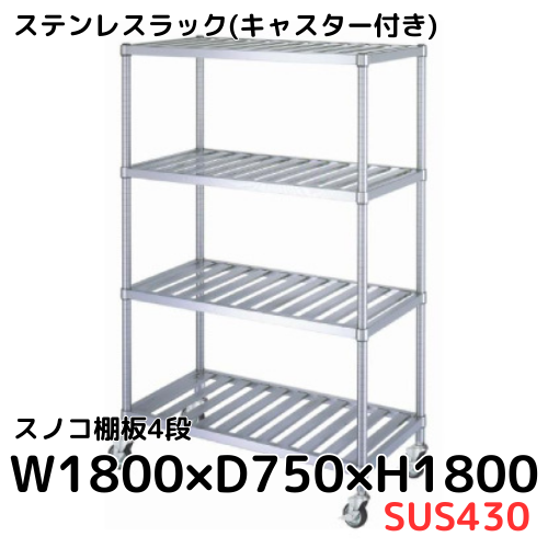 【CWD-RB487C】ステンレスラック スノコ棚板4段 キャスター付き SUS430 W1800*D750*H1800