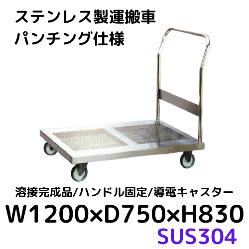 【CWD-P127】ステンレス製運搬車/ハンドル固定・パンチング仕様 SUS304 W1200×D750×H830