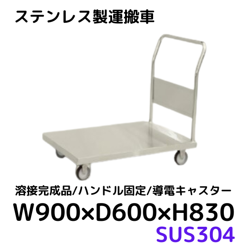 【CWD-S096D】ステンレス製運搬車/ハンドル固定・導電キャスター SUS304 W900×D600×H830