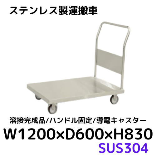 【CWD-S126】ステンレス製運搬車/ハンドル固定 SUS304 W1200×D600×H830