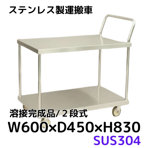 【CWD-W064】ステンレス製運搬車/2段式 SUS304 W600×D450×H830
