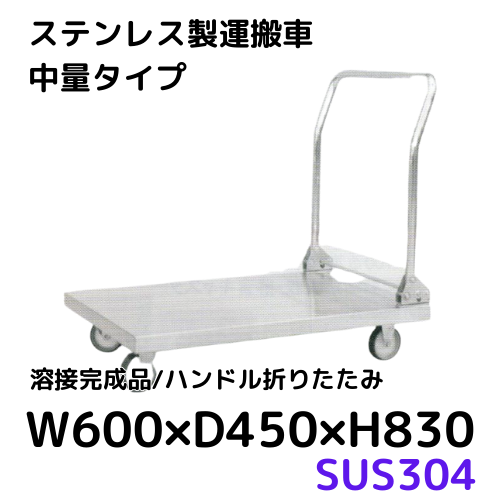 【CWD-064】ステンレス製運搬車/中量タイプ ハンドル折りたたみ式SUS304 W600×D450×H830