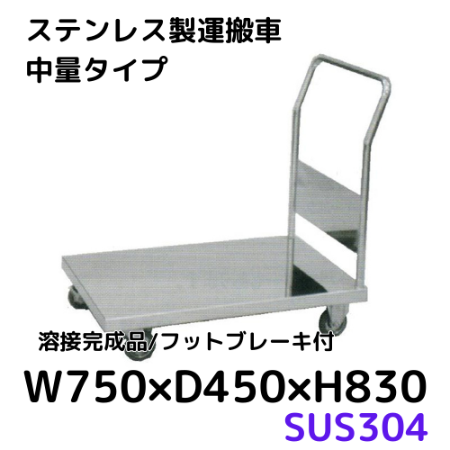 【CWD-M074】ステンレス製運搬車/中量タイプ SUS304 W750×D450×H830