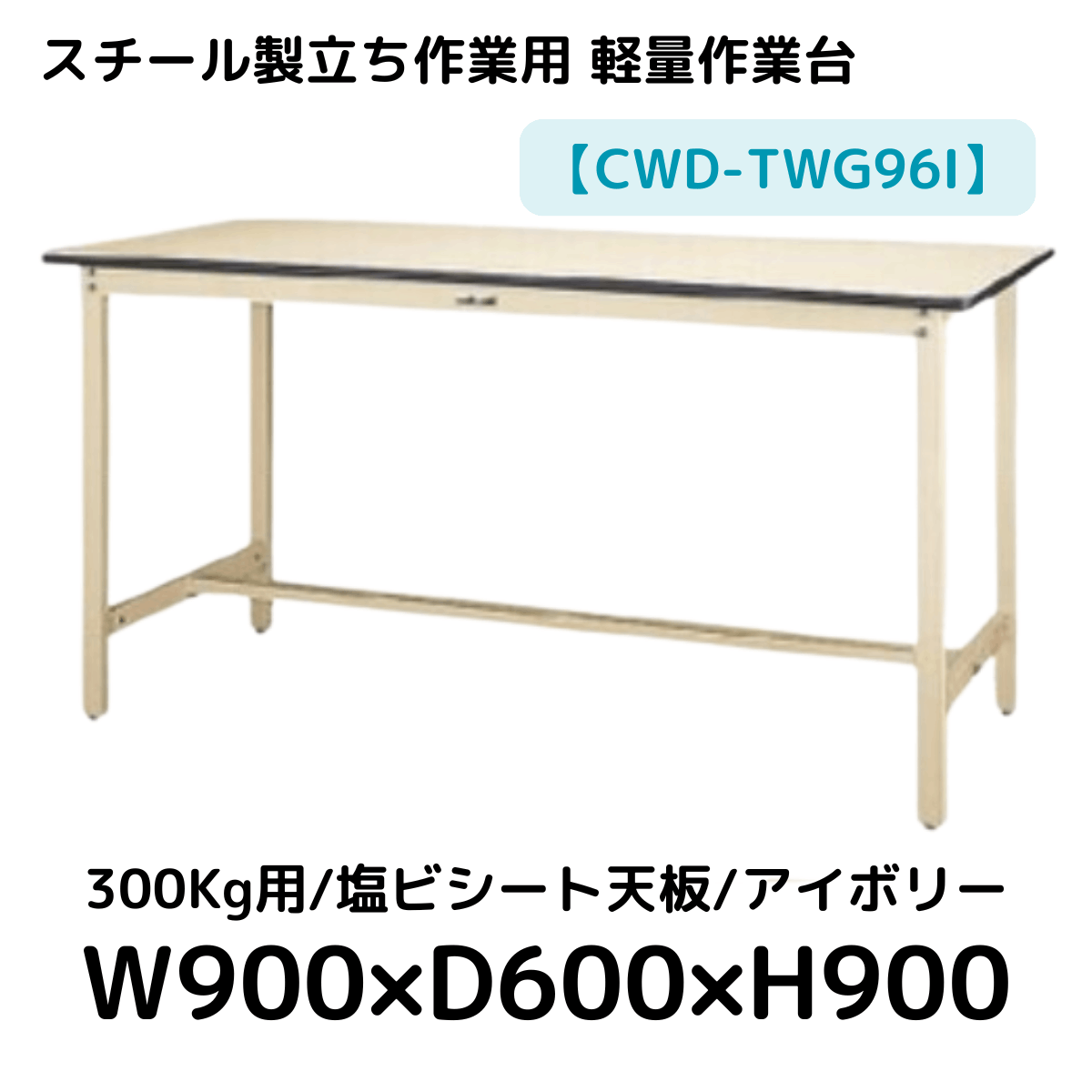 【CWD-TWG96I】スチール製立ち作業台(アイボリー) 300kg用 塩ビシート天板 W900*D600*H900