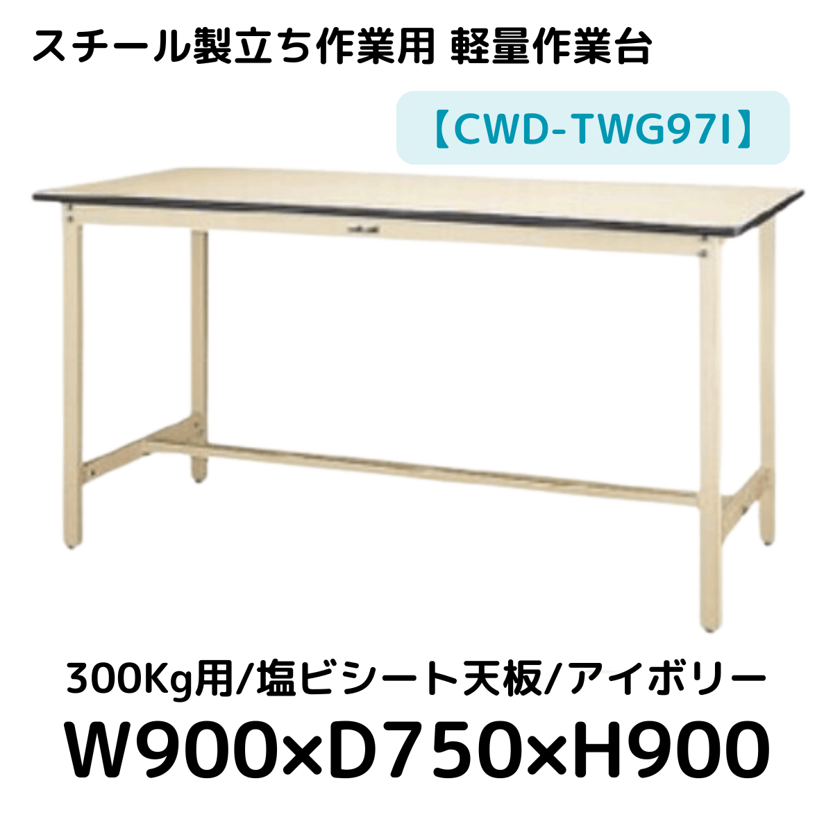 【CWD-TWG97I】スチール製立ち作業台(アイボリー) 300kg用 塩ビシート天板 W900*D750*H900