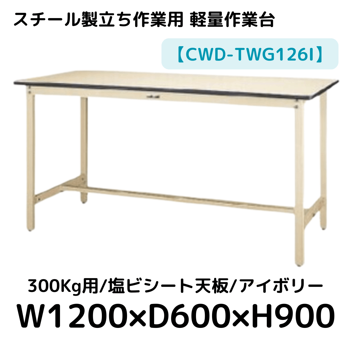 【CWD-TWG126I】スチール製立ち作業台(アイボリー) 300kg用 塩ビシート天板 W1200*D600*H900