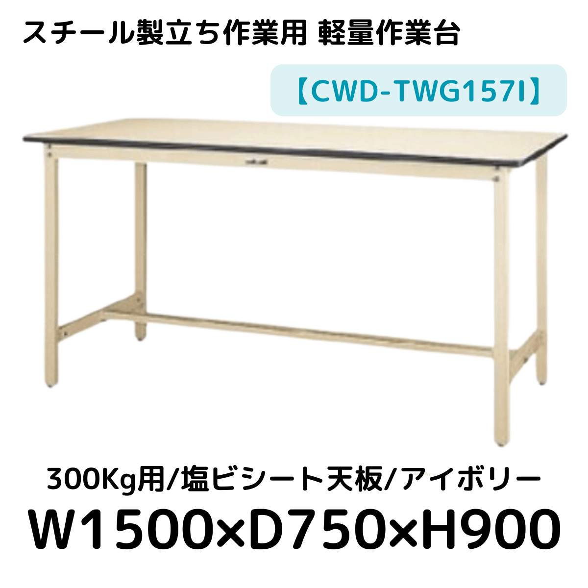 【CWD-TWG157I】スチール製立ち作業台(アイボリー) 300kg用 塩ビシート天板 W1500*D750*H900