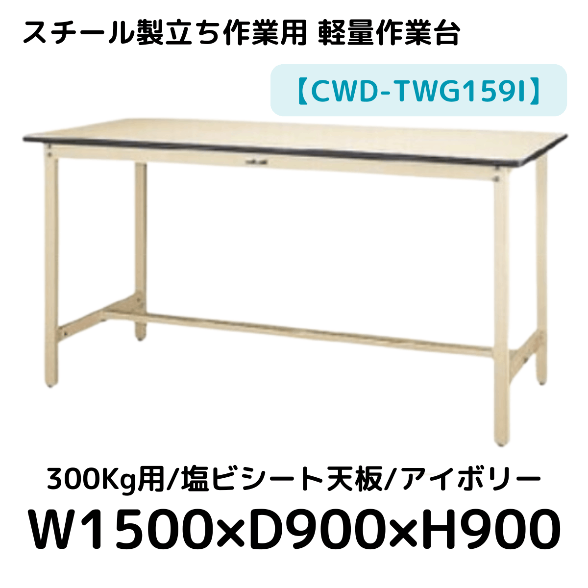 【CWD-TWG159I】スチール製立ち作業台(アイボリー) 300kg用 塩ビシート天板 W1500*D900*H900
