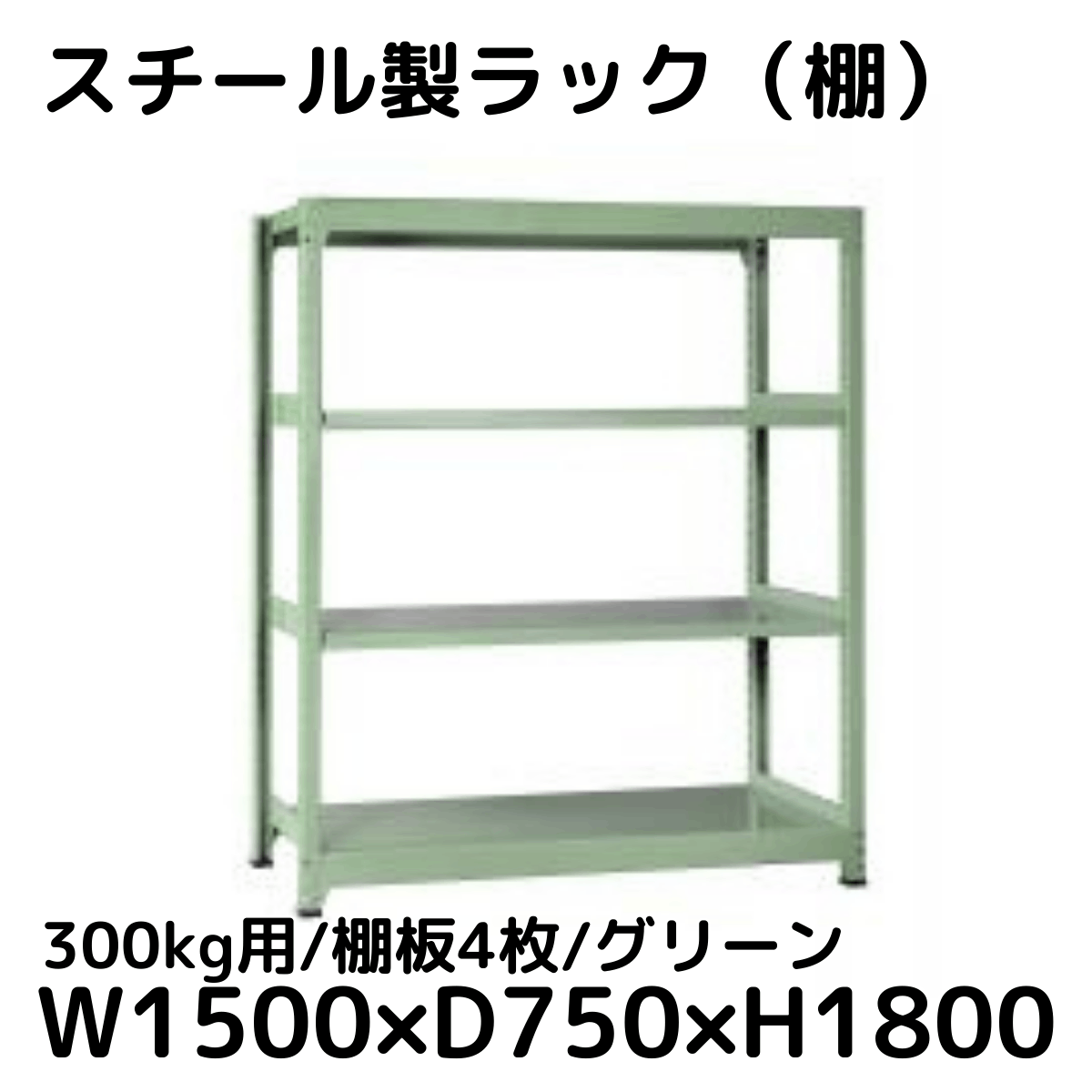 【CWD-R34857TG】スチール製ラック 棚 連結用(グリーン) 300kg用 棚板4枚 W1500*D750*H1800