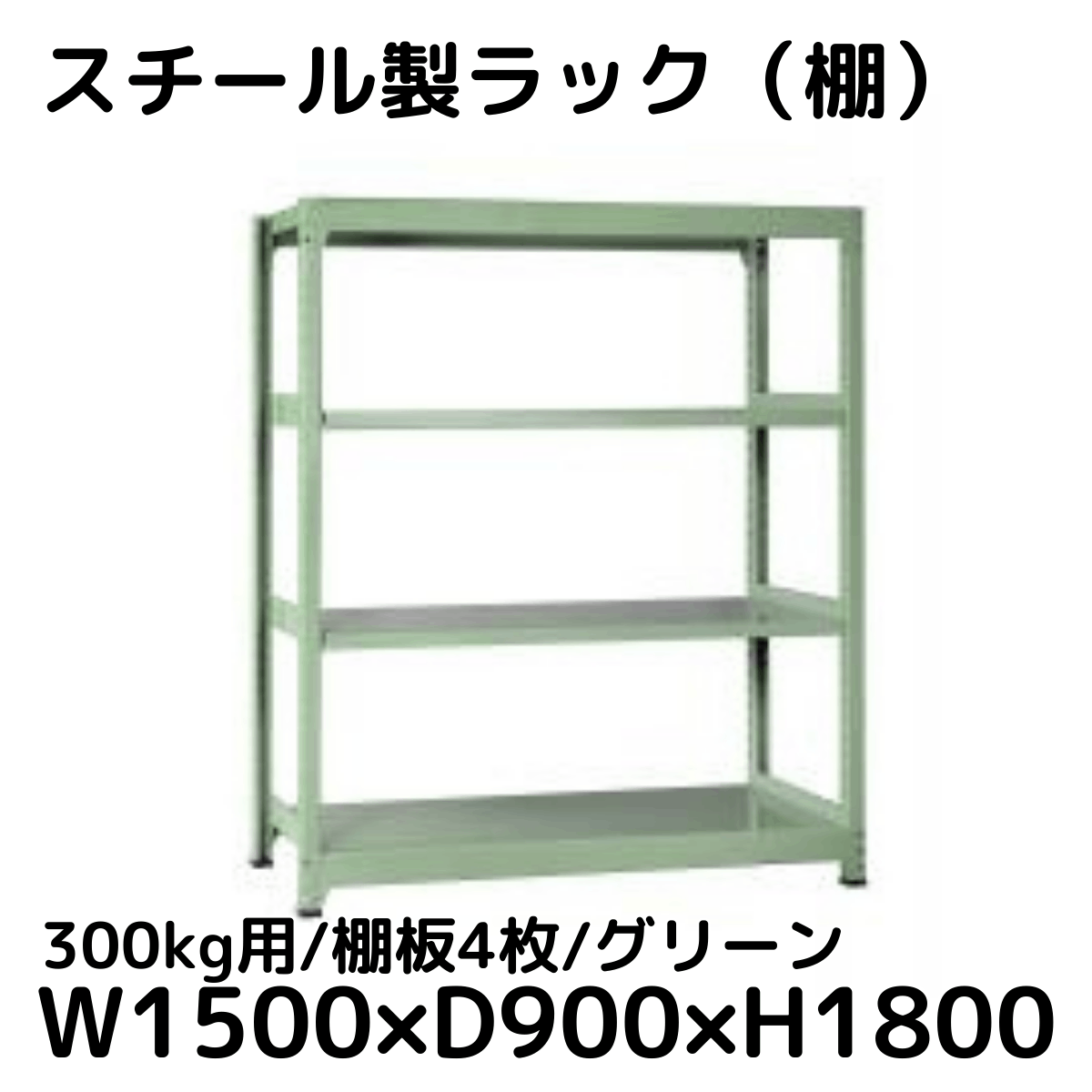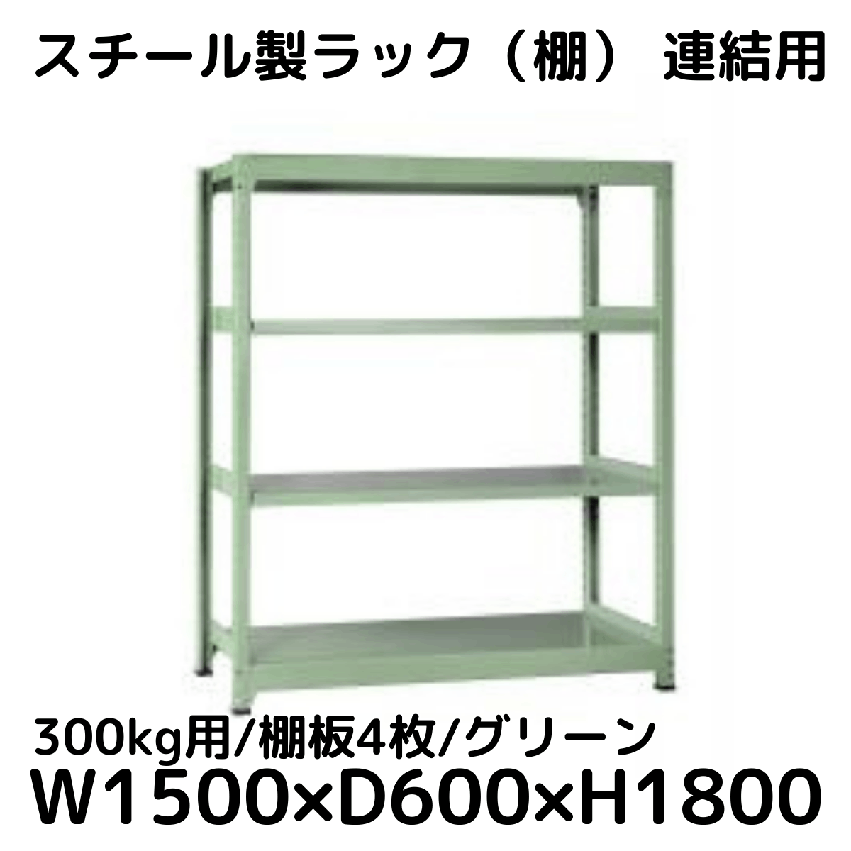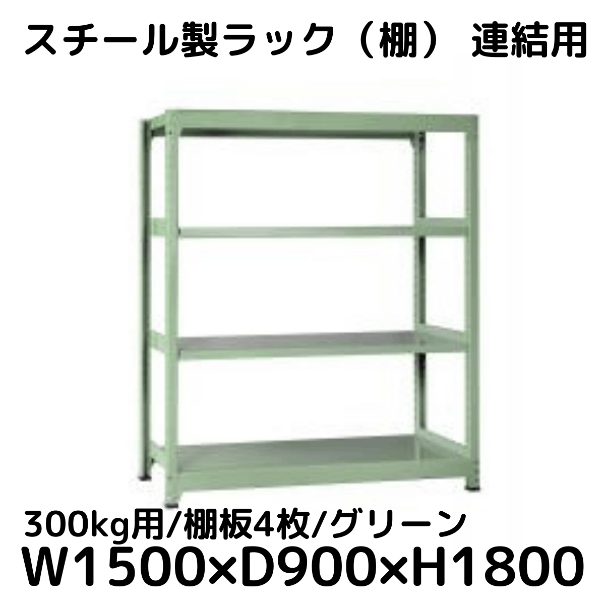 【CWD-R34859TG】スチール製ラック 棚 連結用(グリーン) 300kg用 棚板4枚 W1500*D900*H1800