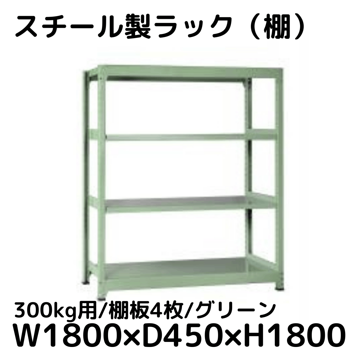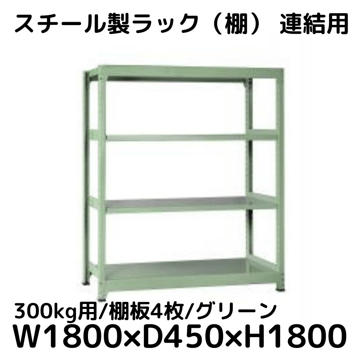 【CWD-R34884TG】スチール製ラック 棚 連結用(グリーン) 300kg用 棚板4枚 W1800*D450*H1800
