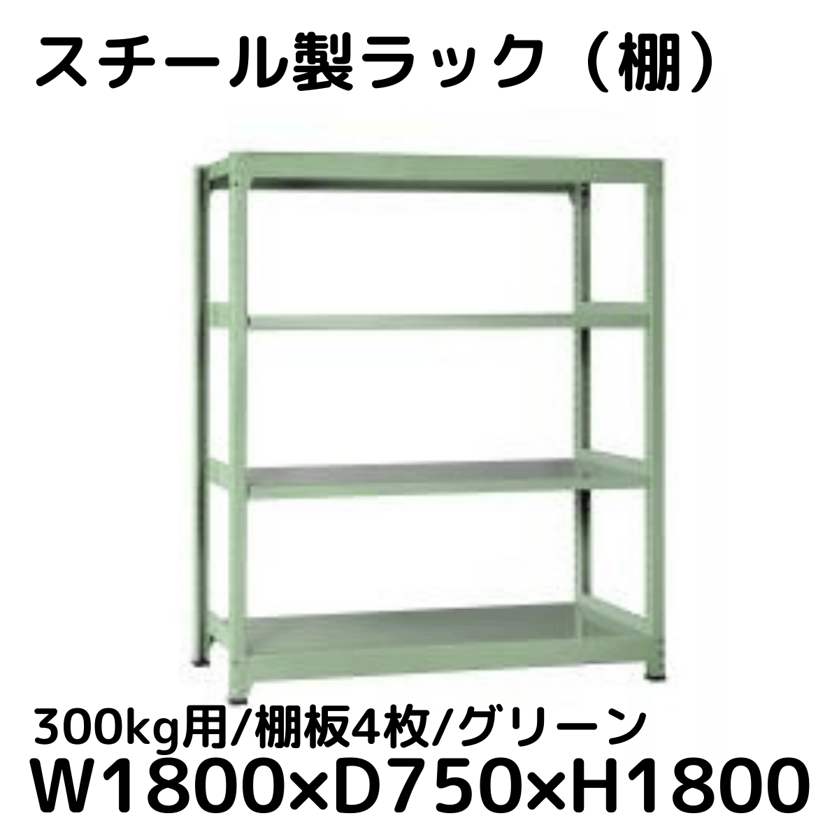 【CWD-R34887TG】スチール製ラック 棚 連結用(グリーン) 300kg用 棚板4枚 W1800*D750*H1800