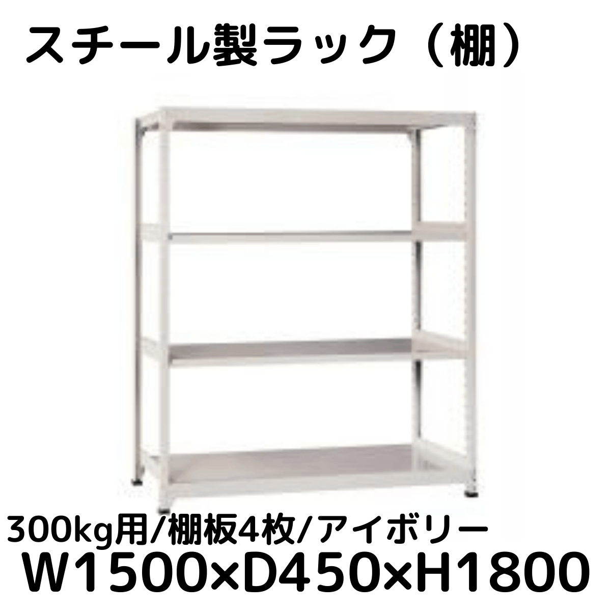 【CWD-R34854I】スチール製ラック 棚 (アイボリー) 300kg用 棚板4枚 W1500*D450*H1800