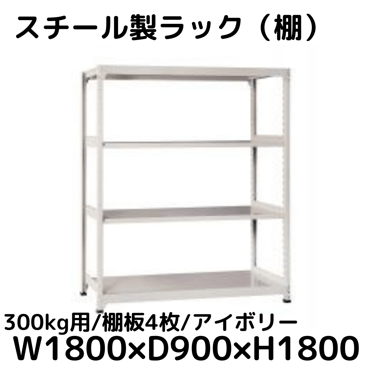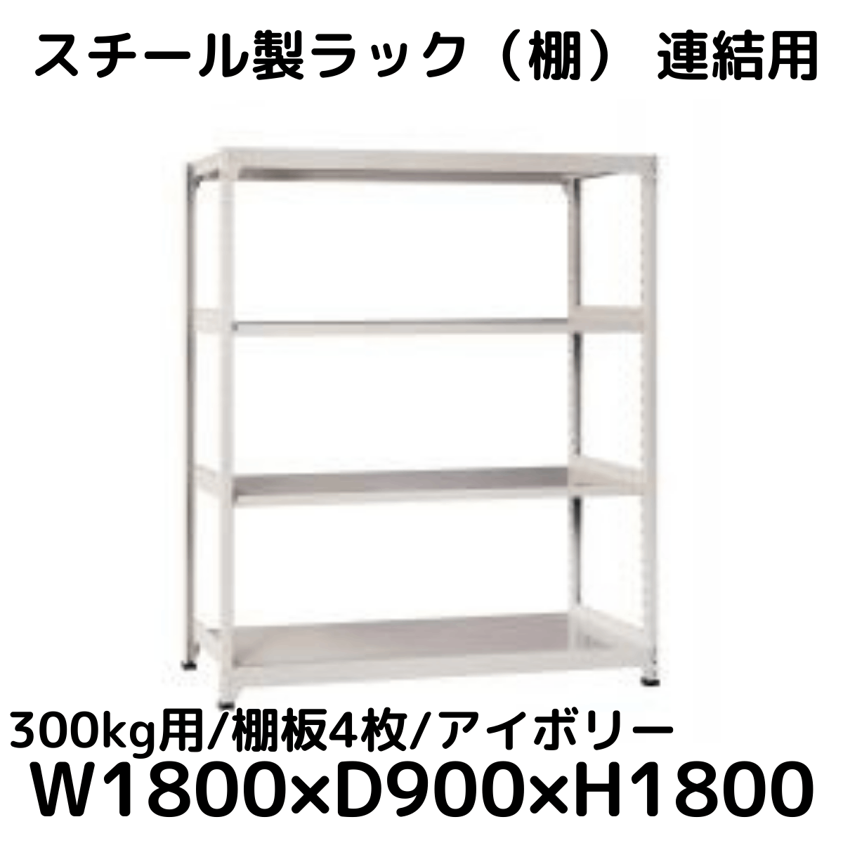 【CWD-R34889TI】スチール製ラック 棚 連結用(アイボリー) 300kg用 棚板4枚 W1800*D900*H1800