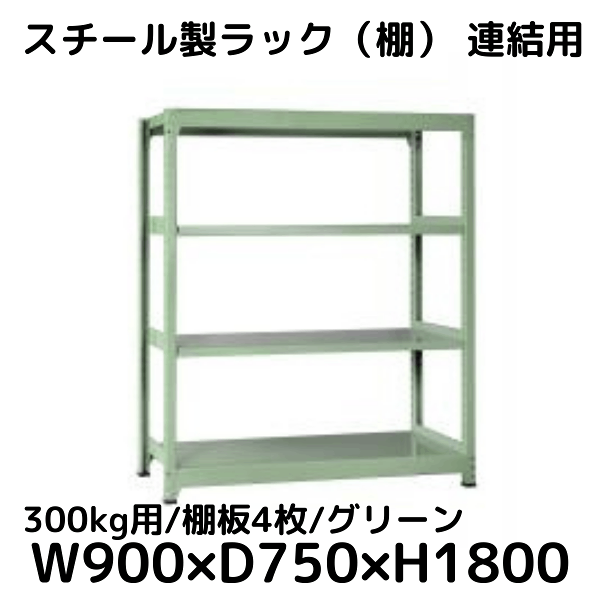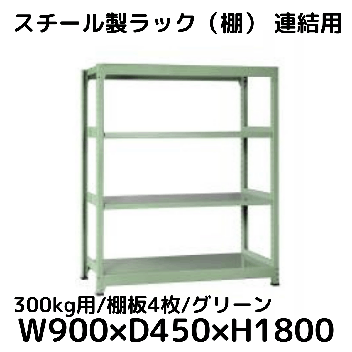 【CWD-R34894TG】スチール製ラック 棚 連結用(グリーン) 300kg用 棚板4枚 W900*D450*H1800
