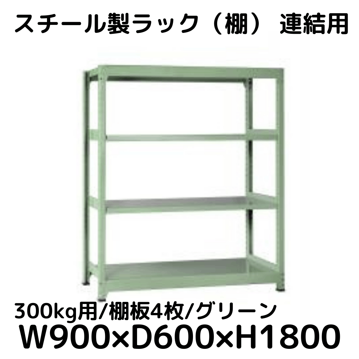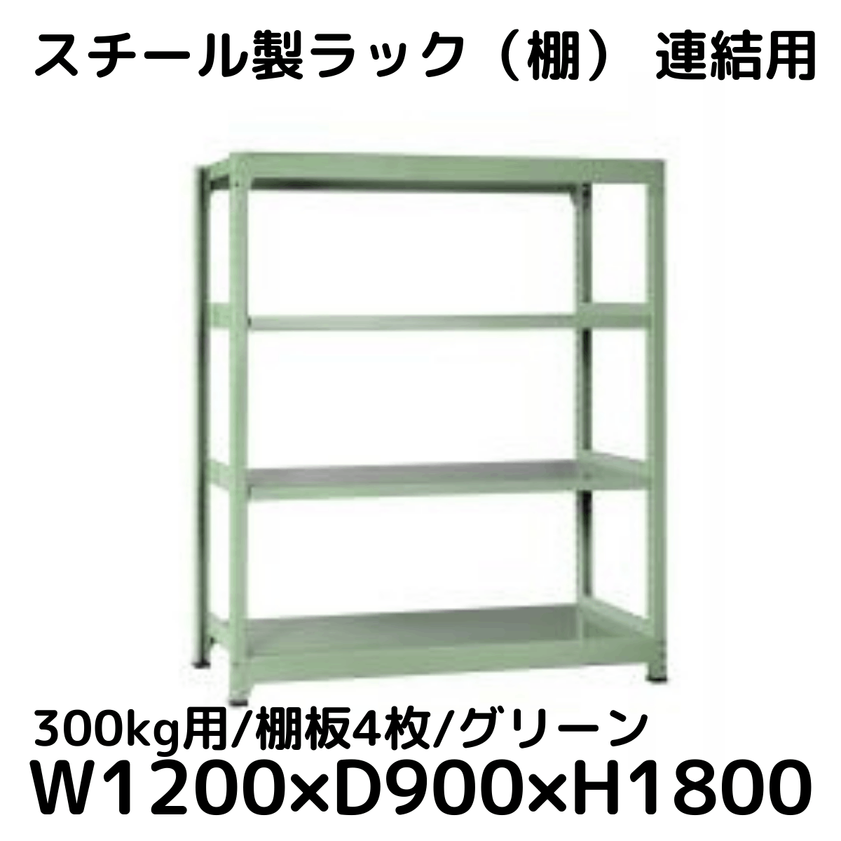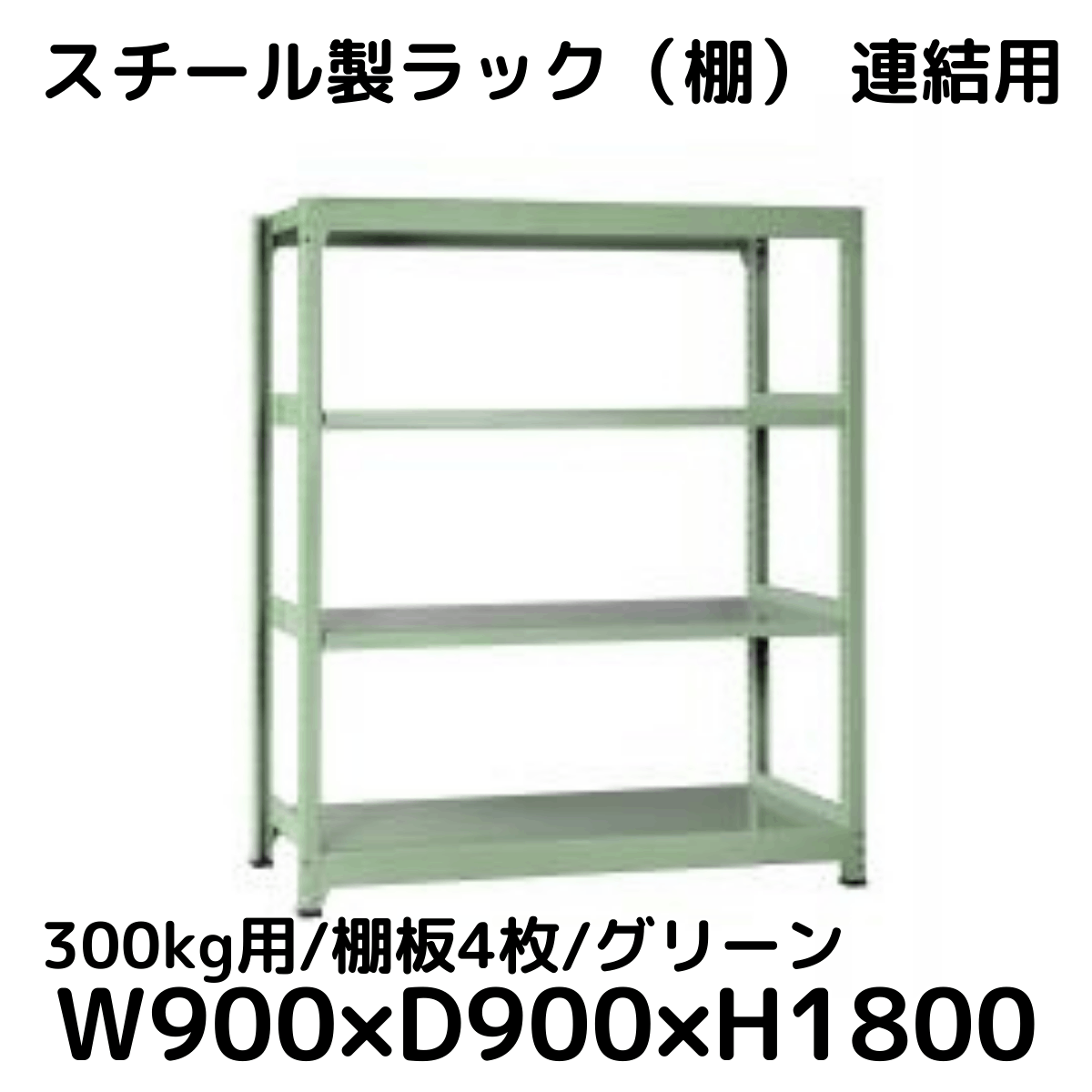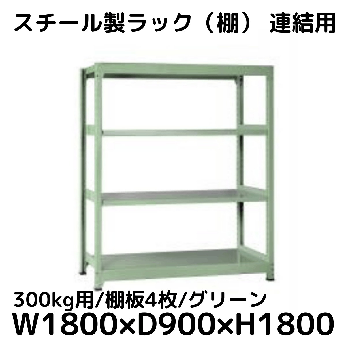 【CWD-R34889TG】スチール製ラック 棚 連結用(グリーン) 300kg用 棚板4枚 W1800*D900*H1800