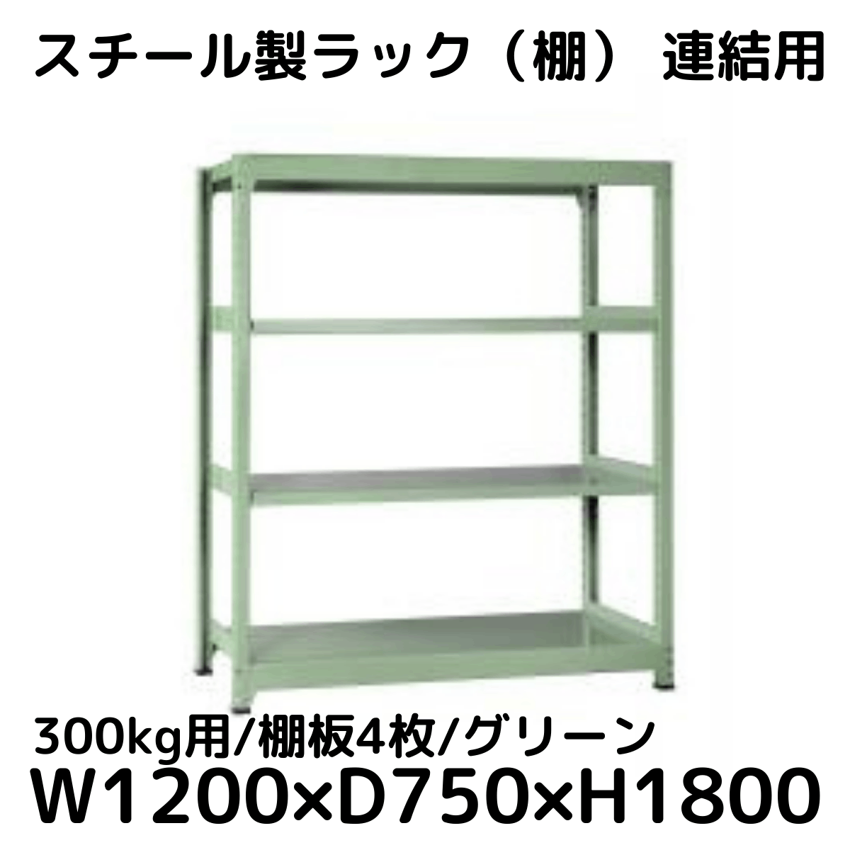 【CWD-R34827TG】スチール製ラック 棚 連結用(グリーン) 300kg用 棚板4枚 W1200*D750*H1800