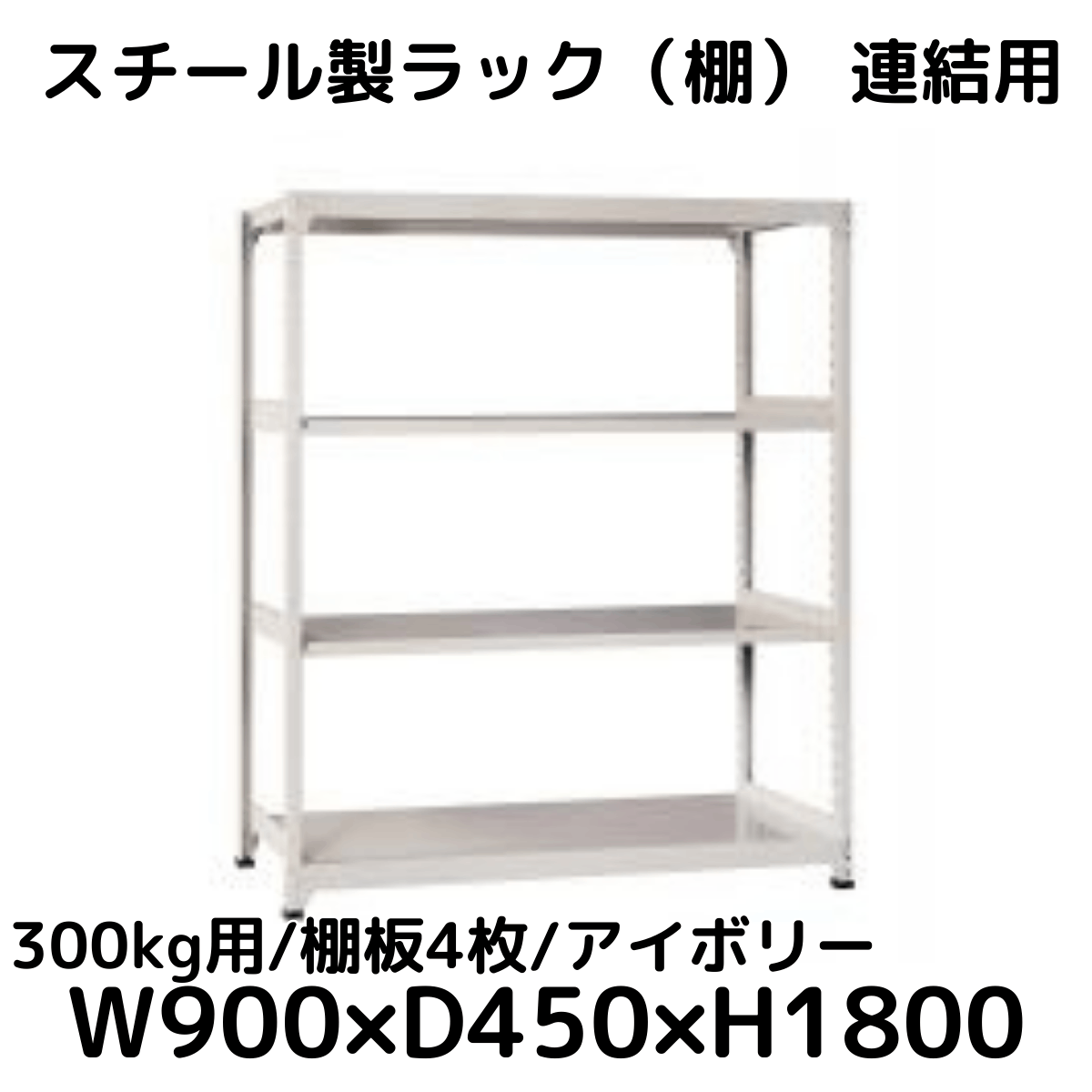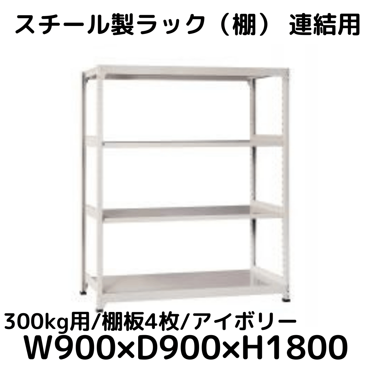 【CWD-R34899TI】スチール製ラック 棚 連結用(アイボリー) 300kg用 棚板4枚 W900*D900*H1800