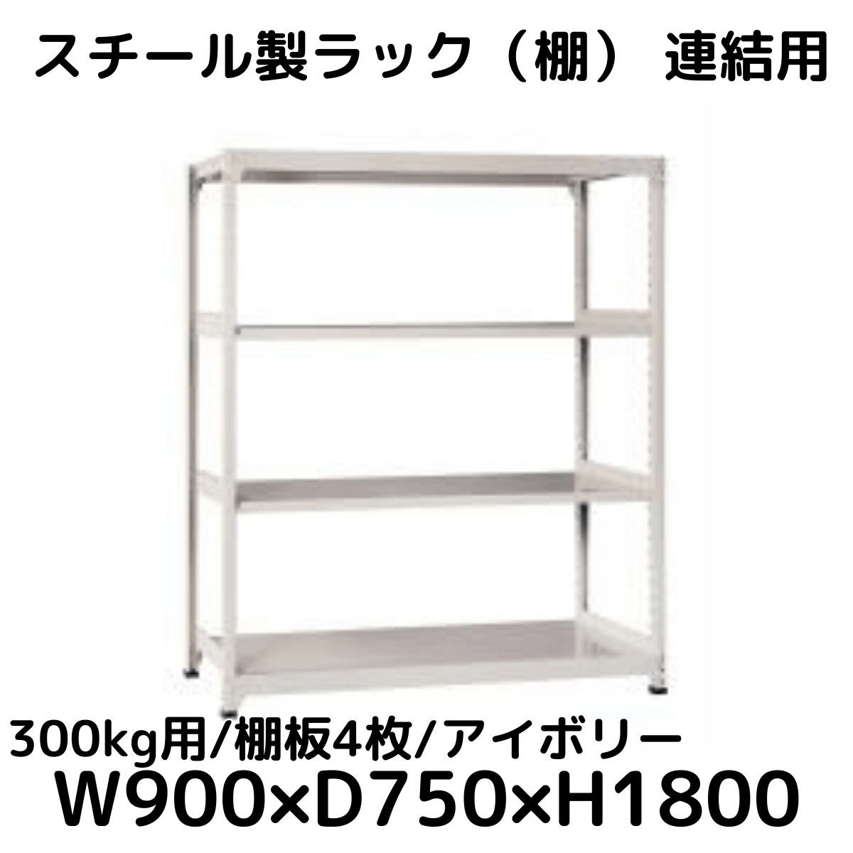 【CWD-R34897TI】スチール製ラック 棚 連結用(アイボリー) 300kg用 棚板4枚 W900*D750*H1800