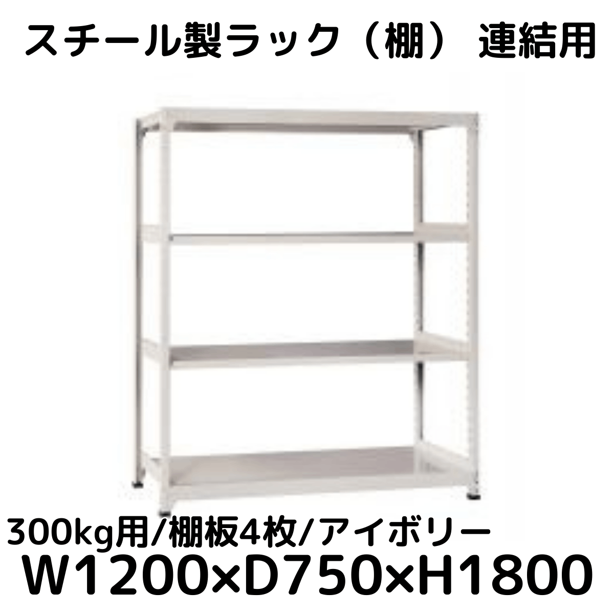 【CWD-R34827TI】スチール製ラック 棚 連結用(アイボリー) 300kg用 棚板4枚 W1200*D750*H1800