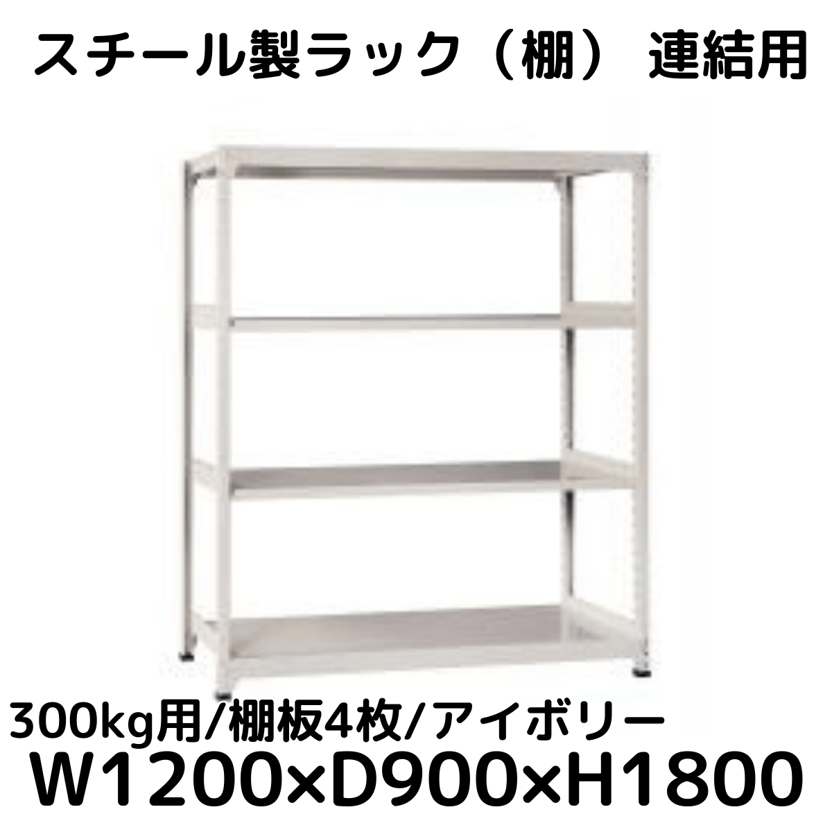 【CWD-R34829TI】スチール製ラック 棚 連結用(アイボリー) 300kg用 棚板4枚 W1200*D900*H1800