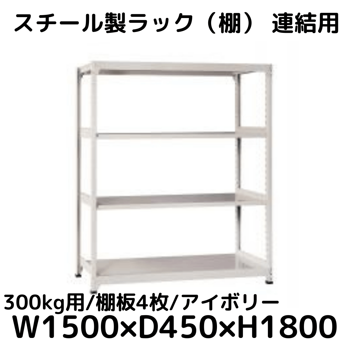【CWD-R34854TI】スチール製ラック 棚 連結用(アイボリー) 300kg用 棚板4枚 W1500*D450*H1800