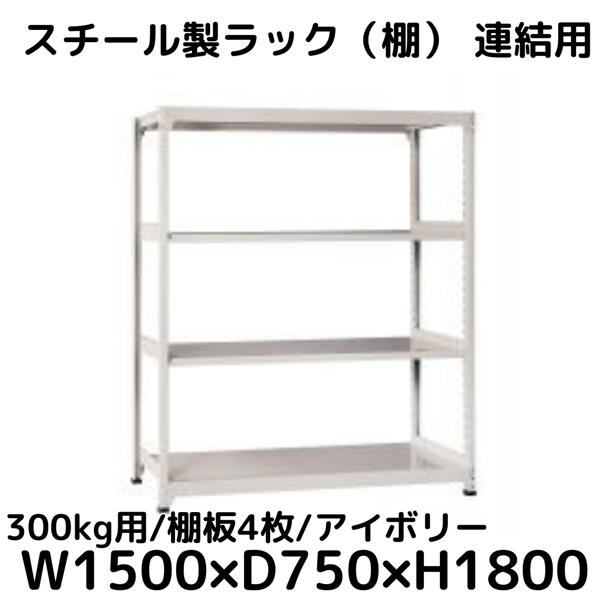 【CWD-R34857TI】スチール製ラック 棚 連結用(アイボリー) 300kg用 棚板4枚 W1500*D750*H1800