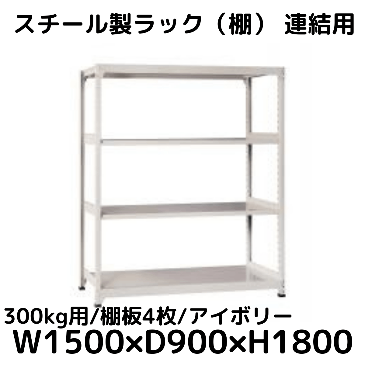 【CWD-R34859TI】スチール製ラック 棚 連結用(アイボリー) 300kg用 棚板4枚 W1500*D900*H1800