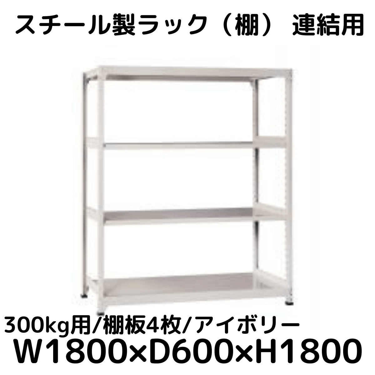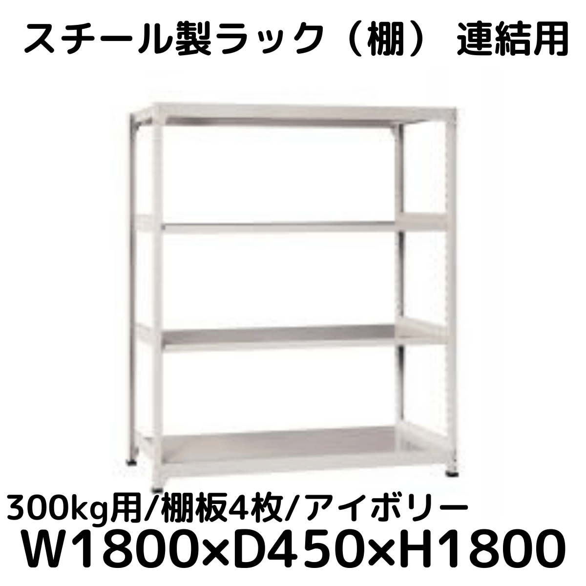 【CWD-R34884TI】スチール製ラック 棚 連結用(アイボリー) 300kg用 棚板4枚 W1800*D450*H1800