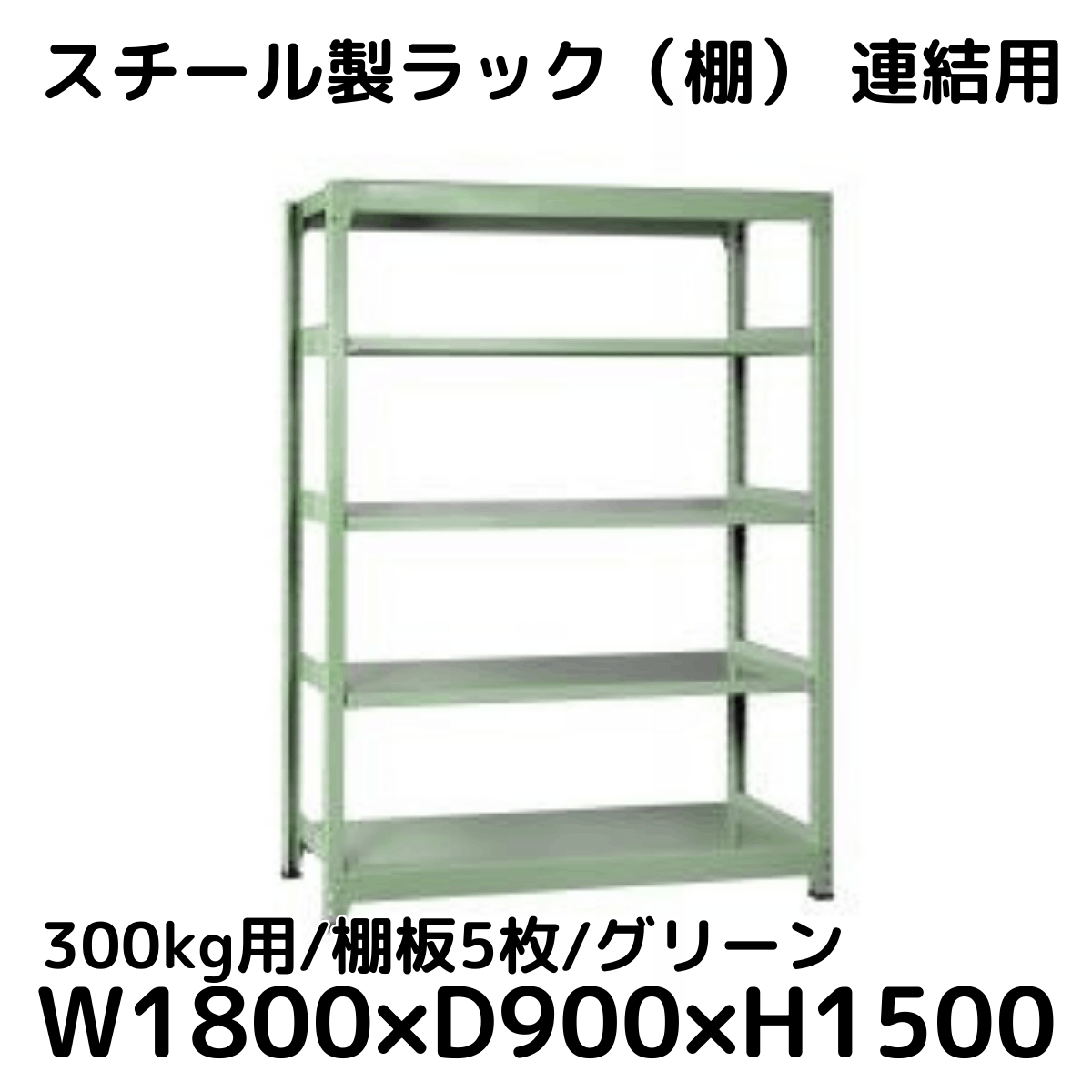 【CWD-R35589TG】スチール製ラック 棚 連結用(グリーン) 300kg用 棚板5枚 W1800*D900*H1500