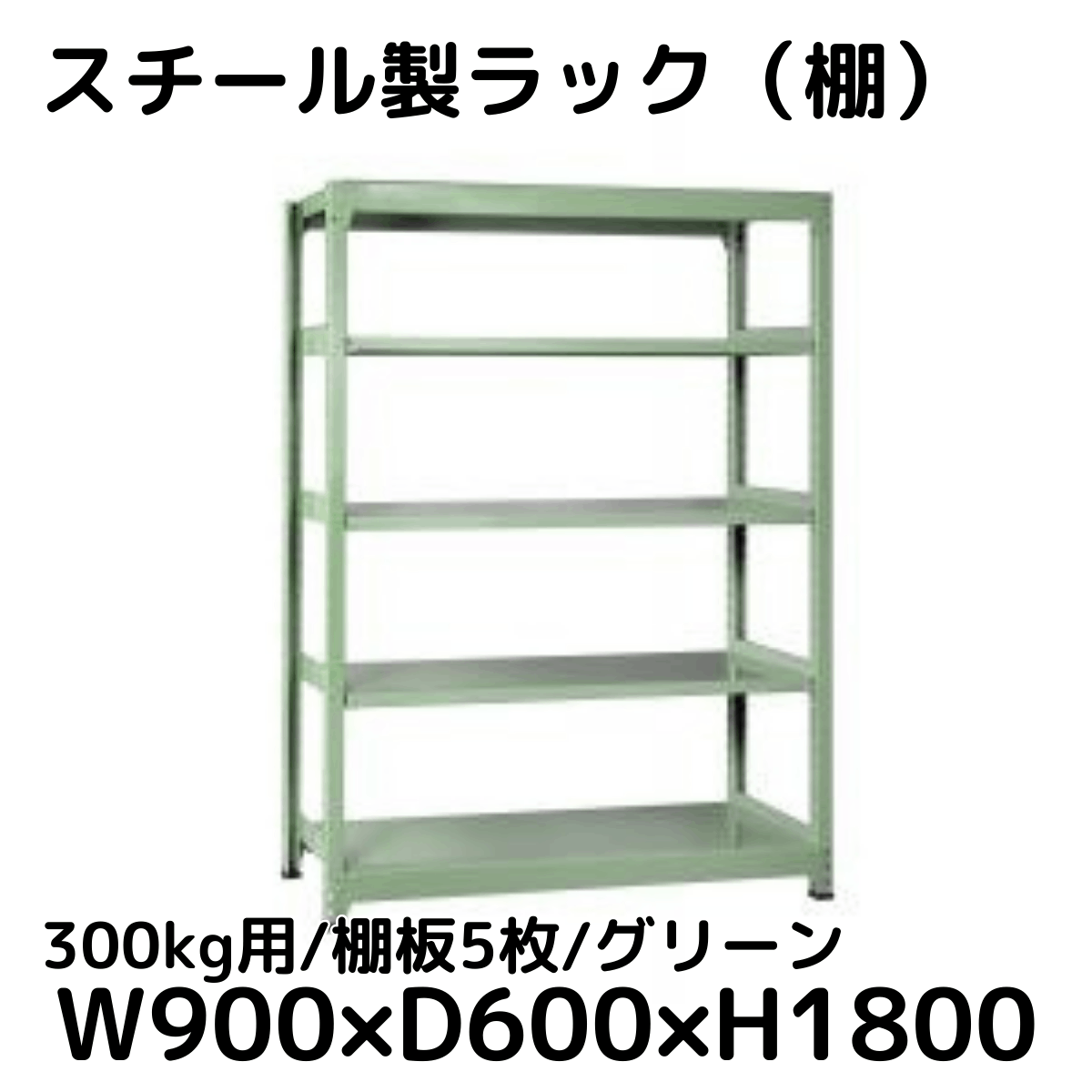 【CWD-R35896G】スチール製ラック 棚 (グリーン) 300kg用 棚板5枚 W900*D600*H1800