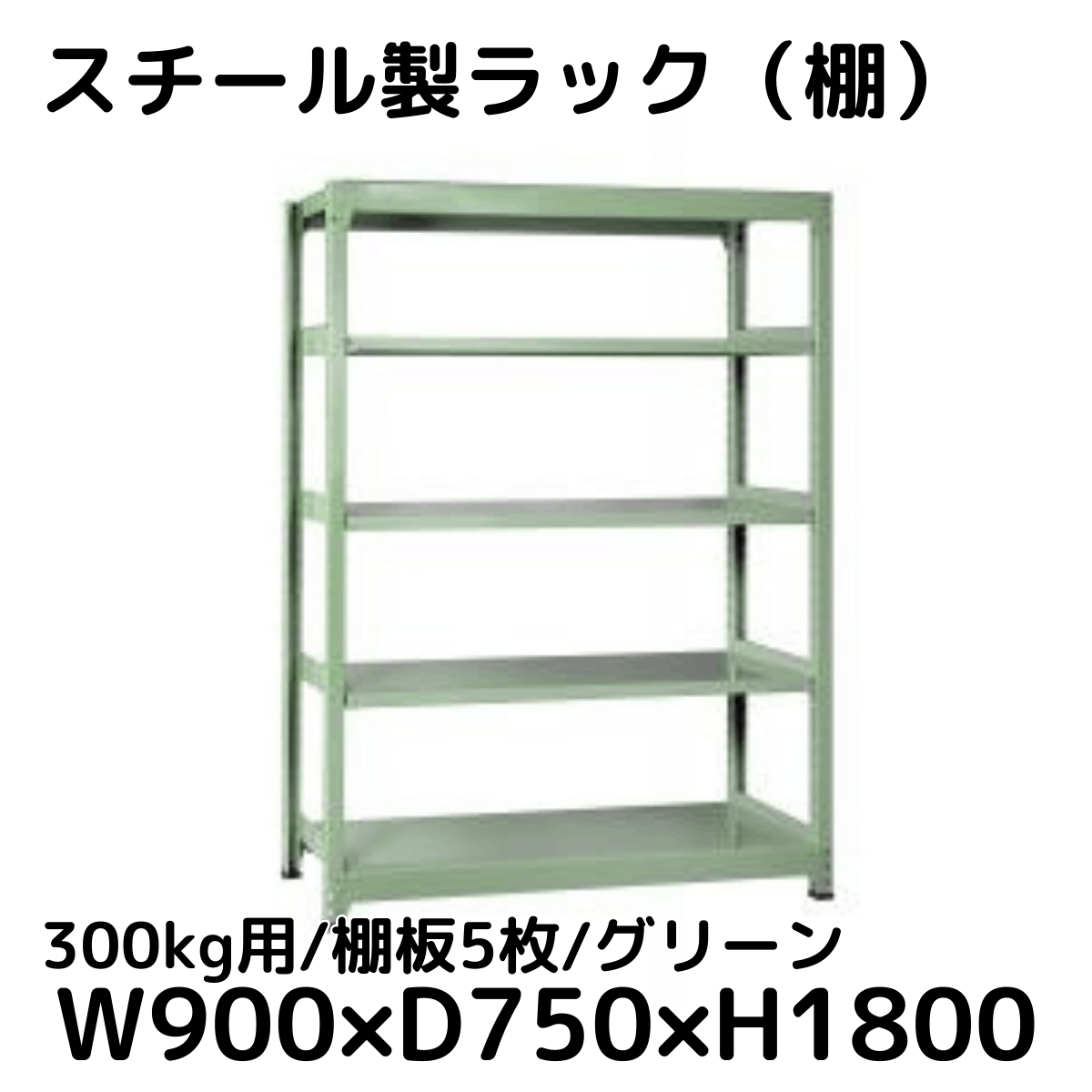 【CWD-R35897G】スチール製ラック 棚 (グリーン) 300kg用 棚板5枚 W900*D750*H1800