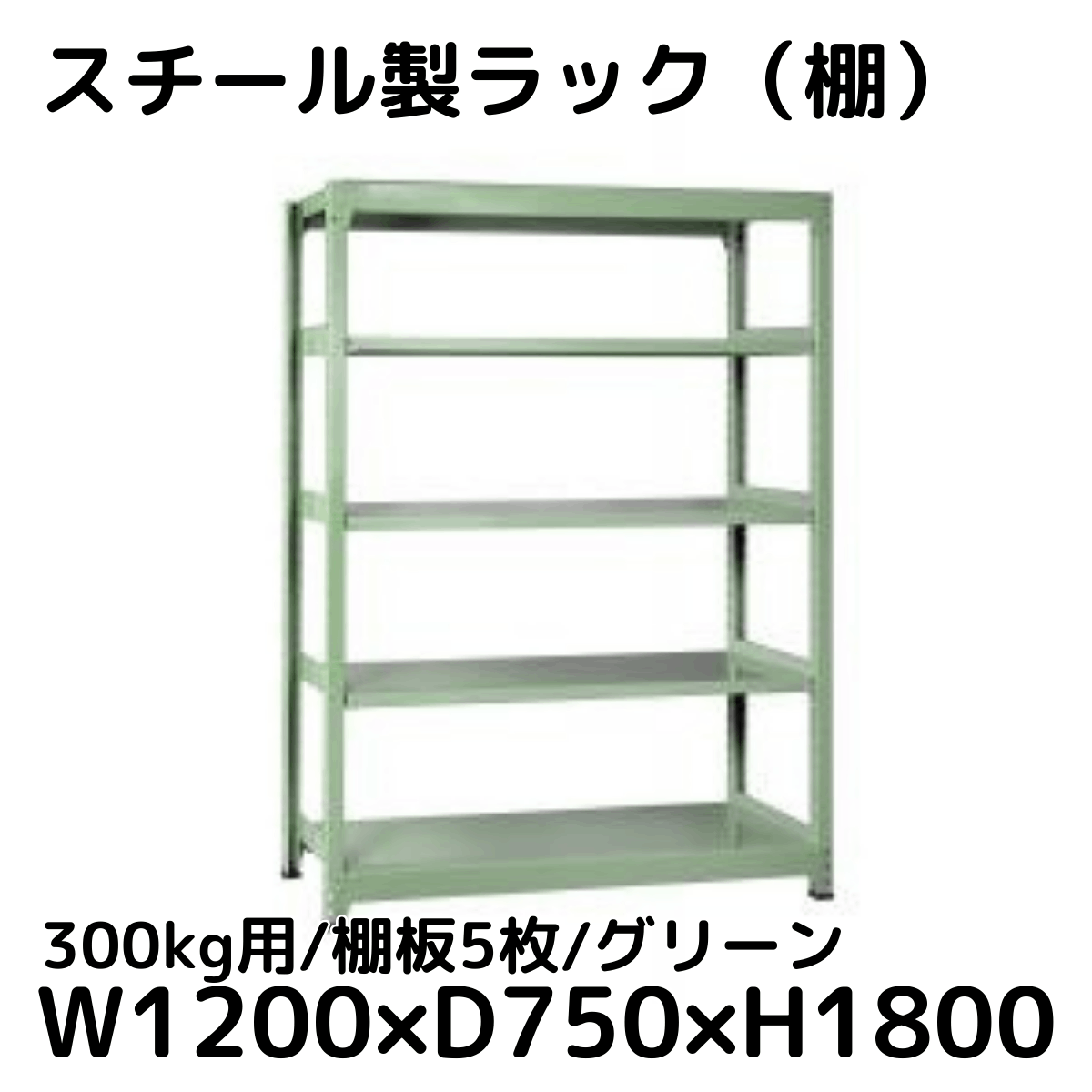 【CWD-R35824G】スチール製ラック 棚 (グリーン) 300kg用 棚板5枚 W1200*D450*H1800