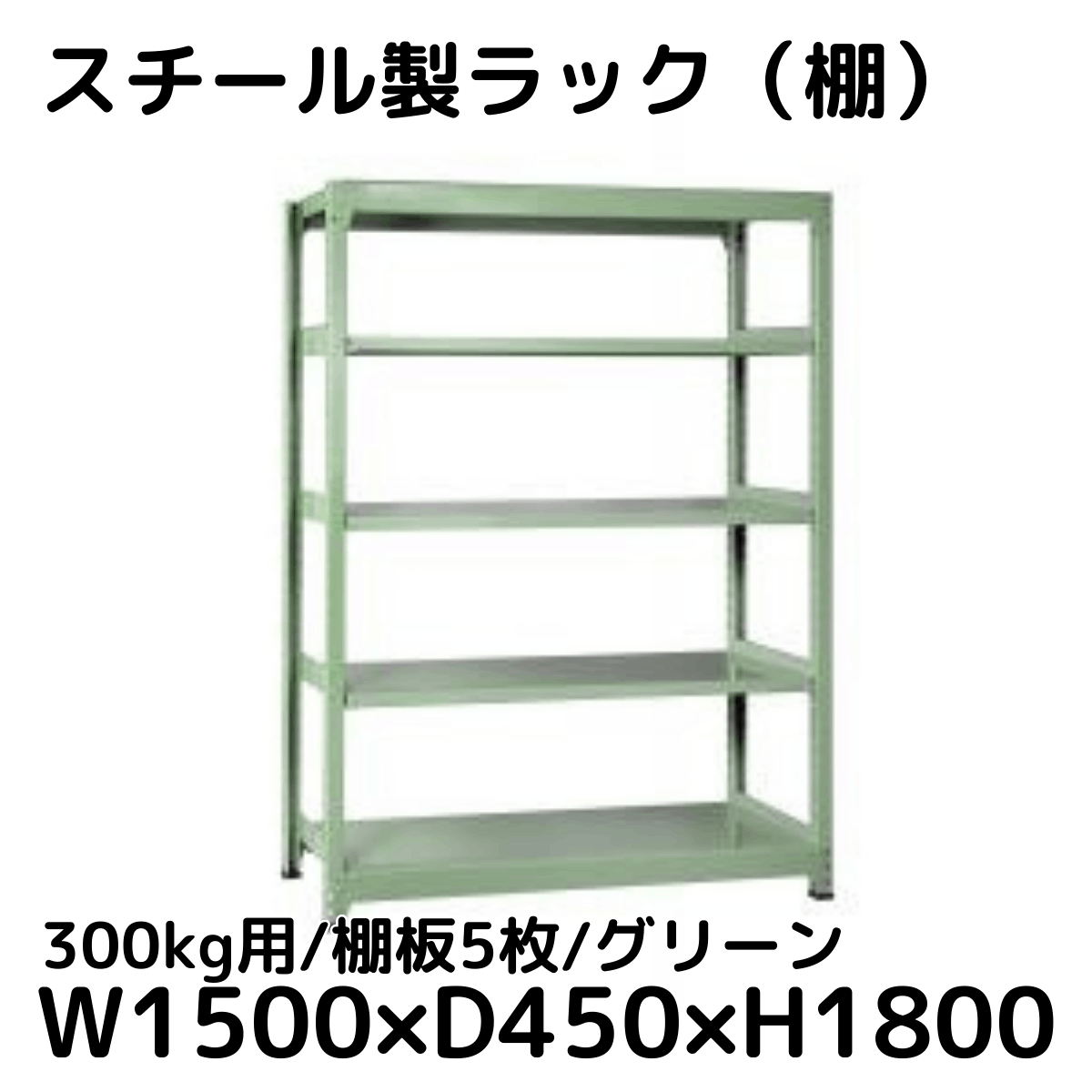 【CWD-R35854G】スチール製ラック 棚 (グリーン) 300kg用 棚板5枚 W1500*D450*H1800