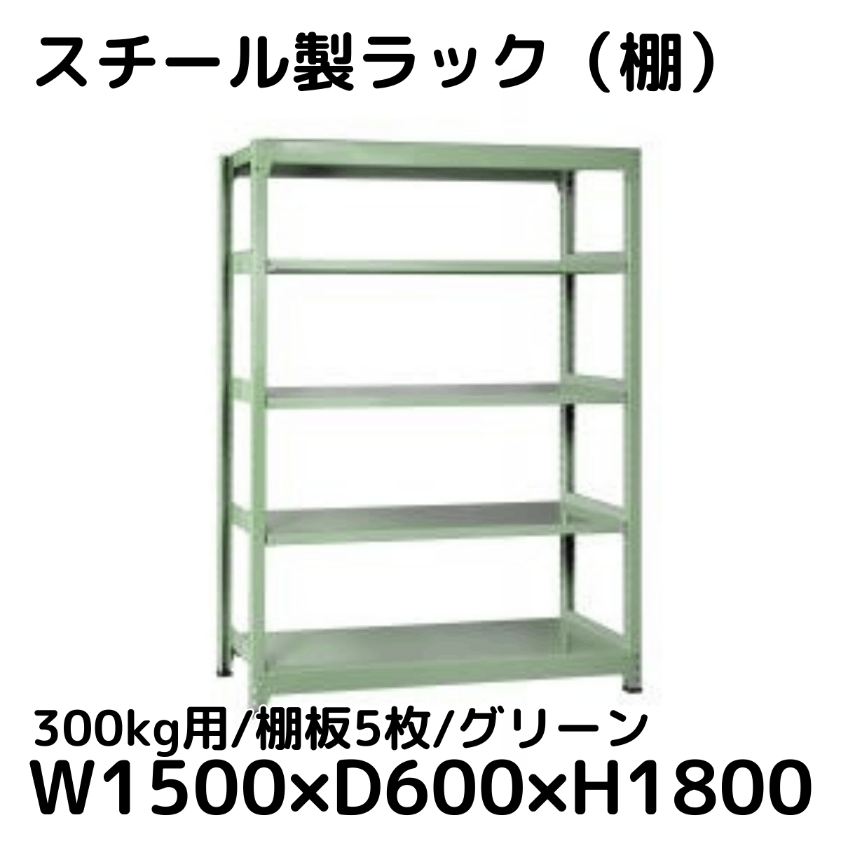 【CWD-R35856G】スチール製ラック 棚 (グリーン) 300kg用 棚板5枚 W1500*D600*H1800