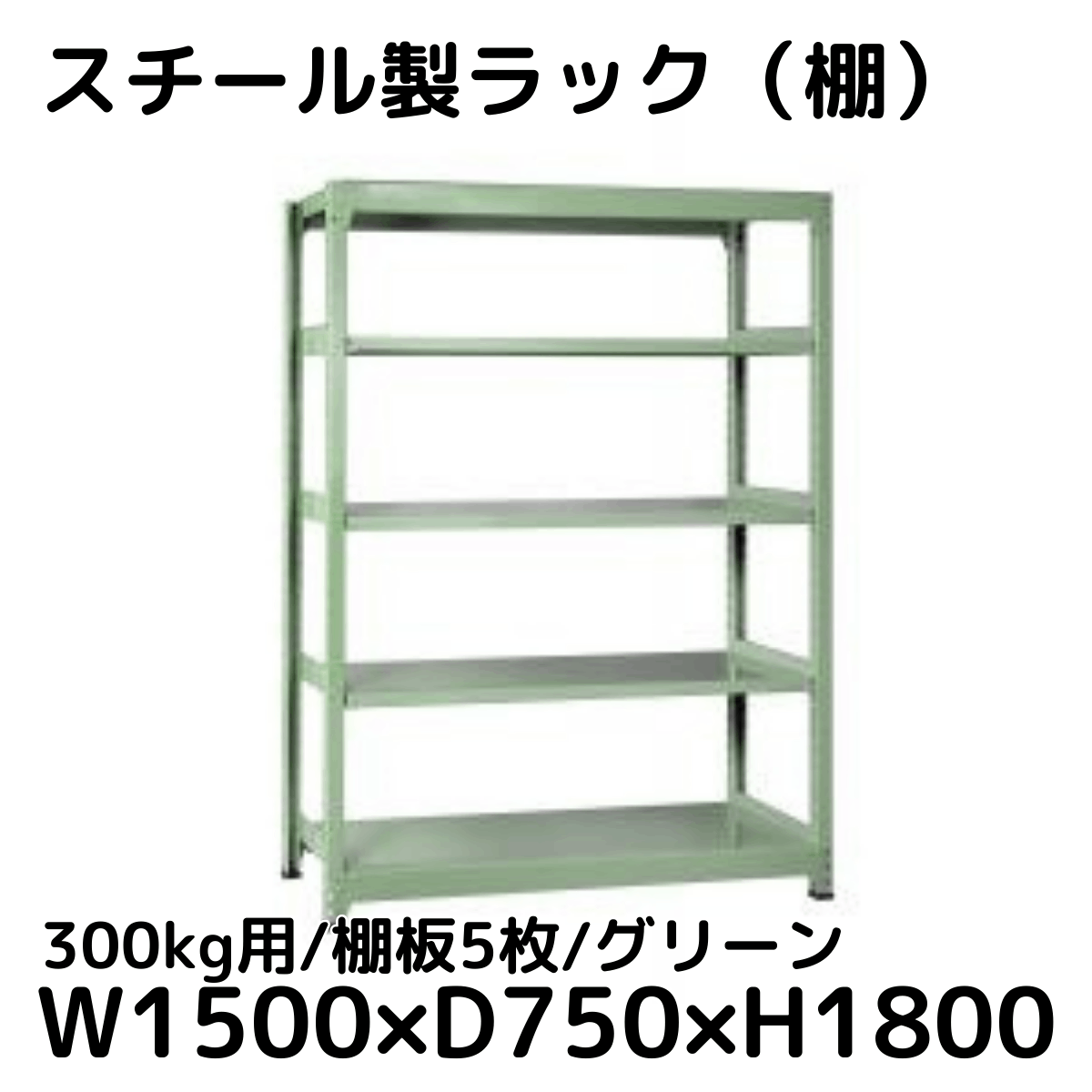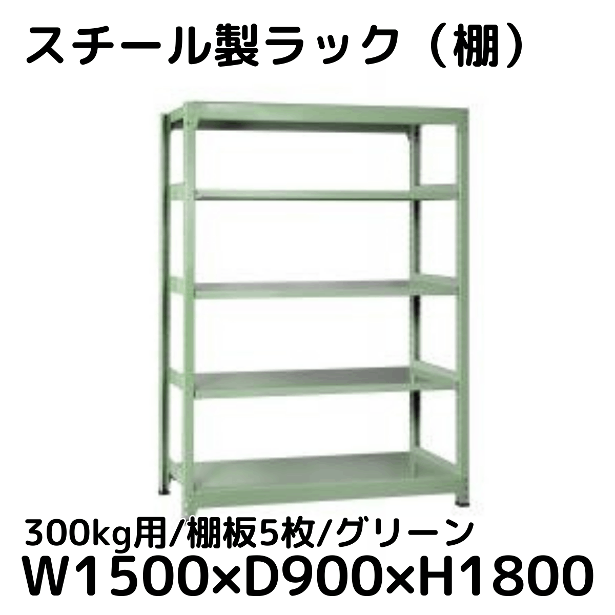 【CWD-R35859G】スチール製ラック 棚 (グリーン) 300kg用 棚板5枚 W1500*D900*H1800